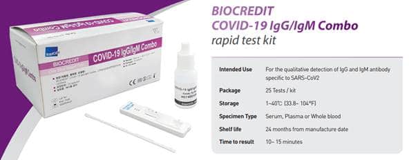 BIOCREDIT COVID-19 IgG/IgM Combo rapid test kit – Pack 25